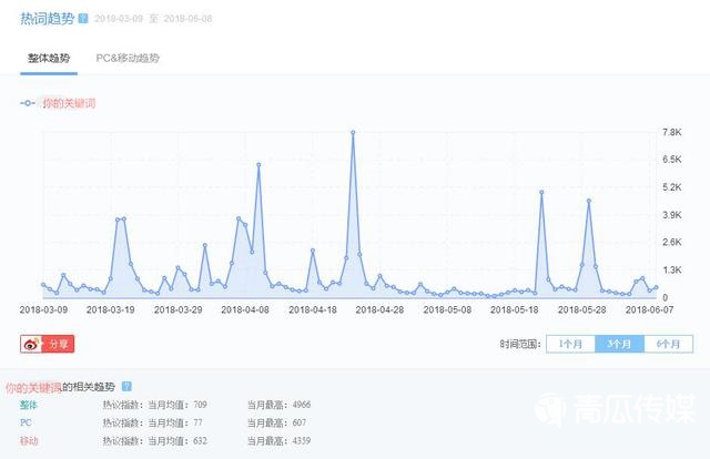 热议指数当月均值:709,峰值出现在4月23日公布xx手游后一日,关键字搜索达到7781,数据比较客观。